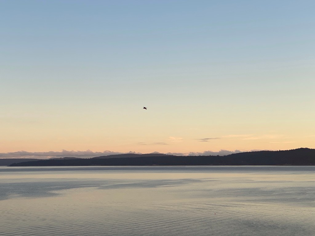 What I am discovering is there is no such thing as darkness. Only a place where the light has yet to shine. I want to invite it in. I want to say hello to this dark place within me and I want to listen and feel what story it has to share with me. Grief shows itself and says I love you. I am where you are. We embrace. In my mind it is shows as two beings in the shape of a person, one white being and one fuzzy black being. As they move toward one another, they embrace, and become one. Integration. And I breathe. I am grateful. I can feel the feeling in my body shift and change and soften. I look out the window at the water and it is still and quiet and clear. A perfect reflection of the hill beside it. I know there is something significant here for me and I will sit with it. Immediately what comes to mind as I watch the ripples of water moving towards the shore is a reflection of what I just experienced within me. Giving myself permission to sit with my discomfort, allowing it to show me or tell me a story and the ripple affect of change within me that vibrates out into the world. Thank you thank you thank you.